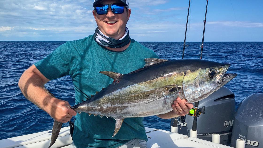 If you’ve caught blackfins in the Florida Keys, you may be used to small “footballs.” Most of our tuna are bigger — 15 pounds is about average, and 30-pounders are regularly caught. Despite being fairly large fish, blackfin like smaller baits. Usually a lure in the 3- to 4-inch range is ideal. They’ll sometimes hit bigger baits, but you’ll get a lot more strikes on small lures.