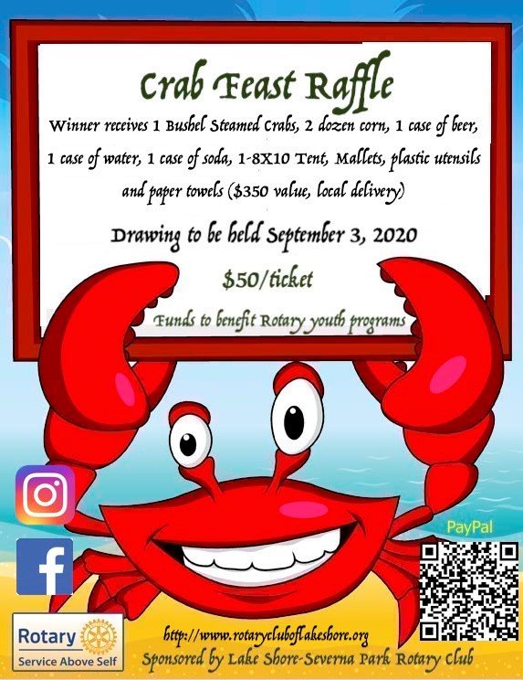 On September 3, the Lake Shore-Severna Park Rotary held a raffle drawing for a crab feast, delivered to the winner's place of choice. The Rotary’s goal was to sell 100 tickets, raising at least $5,000 to expand their ability to offer more scholarships to graduating high school seniors in 2021. The Lake Shore-Severna Park Rotary currently offer scholarships to Severna Park, Chesapeake and Northeast high school students.