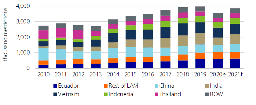 “If this is the case then I see it recapturing the share of the US market that it lost to Ecuador and Indonesia in 2020,” he says.