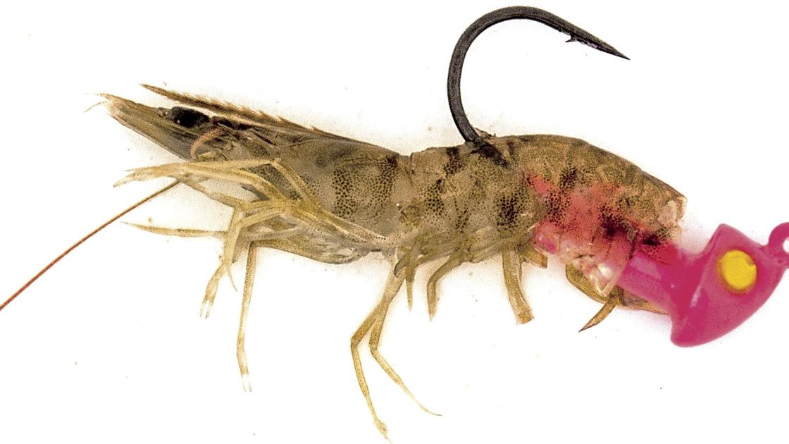 Are you head-hooking or tail-hooking? I do both. If I’m putting the shrimp on a jighead or trying to maximize my casting distance, then tail-hooking is the way to go. But for ease of rigging and to get a more lifelike swimming motion, head-hooking is better. (If the shrimp are dead, tail-hooking is mandatory. The heads will simply fall off.)