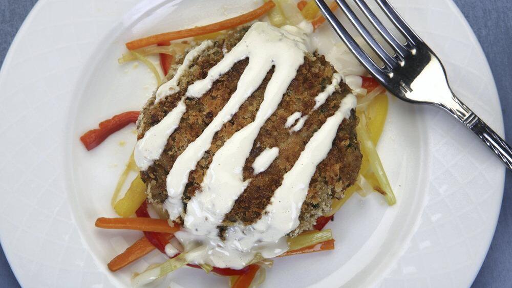 And the preparation is certainly a hard one to beat: Generously portioned, lump crabmeat is flavored with fresh chives and cilantro along with a bit of Old Bay seasoning, the cakes dredged in panko bread crumbs and pan-fried. The cakes are served over a colorful bed of vegetables and topped with a bright Key lime mustard sauce. The sauce “was so tangy, it really enhanced the flavor of the crab,” she wrote when she asked us to get the recipe.